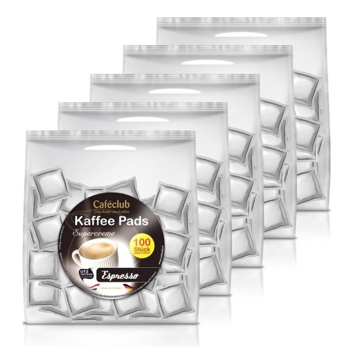 5x Cafeclub Espresso Kaffeepads Megabeutel je 100 stk. dunkle Röstung einzeln verpackt SALE