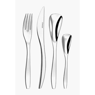 - Composition: 12 fourchettes de table, 12 cuillères de table, 12 couteaux de table , 12 cuillères à café, 1 fourchette de service, 1 cuillère de service, 1 coffret