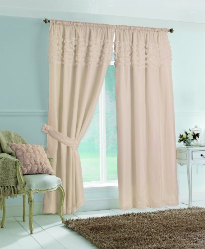 Ces rideaux doublés à tête fourreau plissée Rimini avec voilage font partie de la gamme Curtina. D'une grande qualité et dotés d'un design vintage, ils contribueront sans aucun doute à embellir votre intérieur. Confectionnés avec soin, uniquement avec un polyester de premier choix. Une frise ornementale représentant des roses décore la partie supérieure des rideaux, leur assurant une finition splendide et un aspect luxueux.Apportez une touche d'élégance à votre intérieur grâce à ces splendides rideaux tête fourreau plissée.Embrasses et housse de coussin assorties vendues séparément. Ce sont les accessoires indispensables pour accompagner vos rideaux.